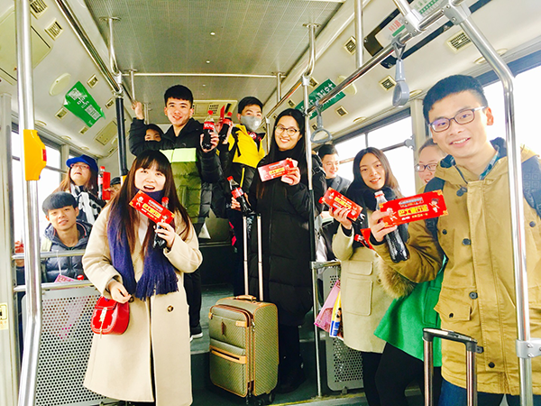 2017年1月13日“春運大潮”正式開始,第一波主流人群就是學生,除了搶車票,擠候車廳,還有前奏就是擠公交,搶出租車去車站。為了讓同學們更順利的回家,可口可樂在鄭州5所高校打造了愛心專列巴士,持續(xù)5天往返于車站和學校之間,助力按時抵達?!斑€有什么比回家更開心的嗎?還有什么比,邊喝可口可樂邊看別人擠公交車更開心的嗎?愛心巴士好贊,讓我們的歸家路無比快樂和暖心!” 河南輕工業(yè)大學大三耿嘉尉同學高興的說著。