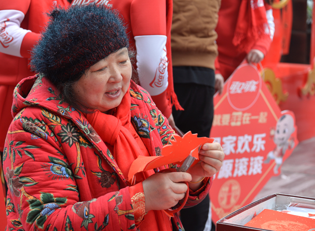 悄然間“我可能過個了個假年”在朋友圈熱傳,過年就要有“年味”。在鄭州最繁華的二七商圈,丹尼斯大衛(wèi)城廣場前,可口可樂攜手丹尼斯共同打造了河南特色年俗街,有傳統(tǒng)木板年畫制作,寫春聯(lián),剪窗花,捏糖人等。現(xiàn)場人頭攢動,好不熱鬧。