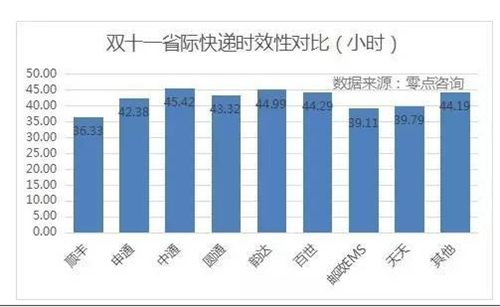 通達系服務(wù)質(zhì)量也大幅提升。數(shù)據(jù)顯示2016年已經(jīng)有75%以上時效在三天內(nèi),滿意度不斷上調(diào),暴力分揀偷件等日益減少,通達與順豐的差異縮短到了6小時內(nèi)。即使在雙十一期間,根據(jù)菜鳥根據(jù)1億個包裹時效統(tǒng)計發(fā)現(xiàn),2013年平均用時9天,2014年6天,2015年4天,2016年只有3.5天。