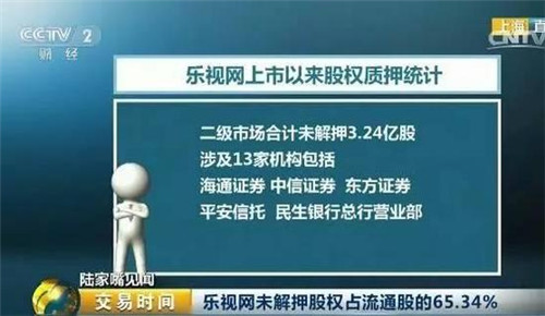 除此之外,涉及樂視網(wǎng)二級(jí)市場(chǎng)股權(quán)質(zhì)押的機(jī)構(gòu),合計(jì)未解質(zhì)押數(shù)量一共3.24億股,包括11家券商,分別是海通證券、中信證券、東方證券等;1家信托,即平安信托,還有1家銀行,民生銀行總行營(yíng)業(yè)部。