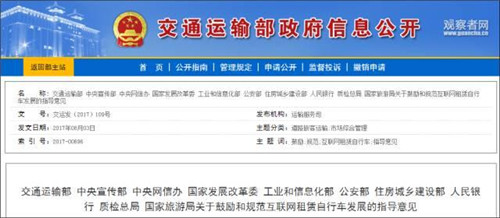 此外,新出臺的國家共享單車管理辦法,也意味著默許發(fā)展的政策紅利期正在成為過去時。8月2日,經國務院同意,交通運輸部、中央宣傳部、中央網信辦、國家發(fā)展改革委、工業(yè)和信息化部、公安部、住房城鄉(xiāng)建設部、人民銀行、質檢總局、國家旅游局10部門聯(lián)合出臺了《關于鼓勵和規(guī)范互聯(lián)網租賃自行車發(fā)展的指導意見》。