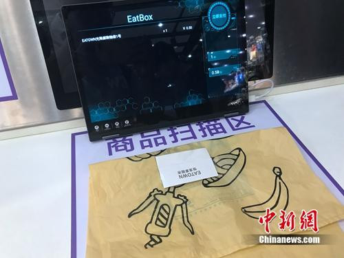 無人超市中,每款商品上都貼有類似的RFID標簽。中新網(wǎng) 吳濤 攝