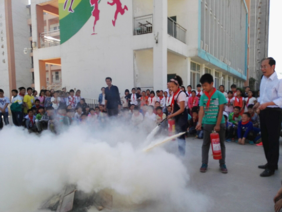 安全疏散演練完畢后,學(xué)校安全員為孩子們講解了校園防火、使用滅火器知識,以及火場逃生自救方法等消防安全常識,并現(xiàn)場指導(dǎo)師生干粉滅火器的使用方法。各班選出學(xué)生代表以及部分教師用滅火器進(jìn)行了現(xiàn)場滅火,參與活動的師生嚴(yán)格認(rèn)真地按照滅火方法進(jìn)行著操作,燃燒的“火魔”瞬間被“消防員”撲滅,場上觀看的師生報以熱烈的掌聲。