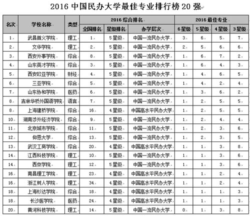 在最新2016中國各地區(qū)大學最佳專業(yè)排行榜中,北京市高校有74專業(yè)榮膺中國七星級專業(yè),蟬聯(lián)第1,上海列第2,江蘇居第3,湖北列第4,湖南居第5。在2016中國民辦大學最佳專業(yè)排行榜中,武昌首義學院、文華學院、西安外事學院、山東英才學院和西安歐亞學院名列前5強。在2016中國獨立學院最佳專業(yè)排行榜中,吉林大學珠海學院、四川大學錦江學院、北京師范大學珠海分校、河南理工大學萬方科技學院和云南師范大學商學院名列前5強。