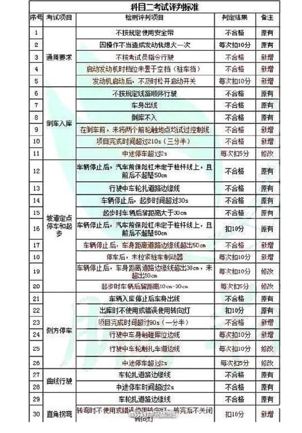 科目二修改和新增項目: