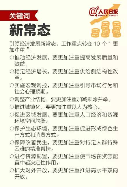 會議認(rèn)為,認(rèn)識新常態(tài)、適應(yīng)新常態(tài)、引領(lǐng)新常態(tài),是當(dāng)前和今后一個時期我國經(jīng)濟(jì)發(fā)展的大邏輯,這是綜合分析世界經(jīng)濟(jì)長周期和我國發(fā)展階段性特征及其相互作用作出的重大判斷。要適應(yīng)新常態(tài),需要在理論上作出創(chuàng)新性概括,在政策上作出前瞻性安排。