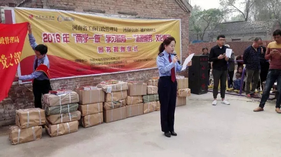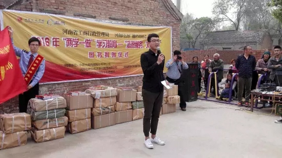 今天,河南省工商局聯(lián)合河南經(jīng)濟(jì)廣播FM1032開展“兩學(xué)一做”志愿服務(wù)文化惠民圖書捐贈(zèng)活動(dòng),來(lái)到封丘縣荊隆宮鄉(xiāng)孫蔡寨村。