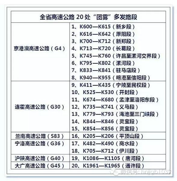 全省高速公路20處“團霧”多發(fā)路段提醒