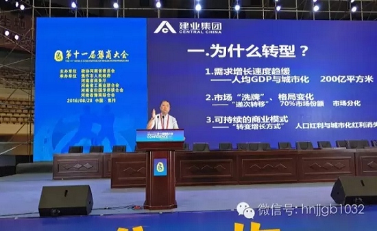 在主題論壇上,建業(yè)住宅集團(tuán)(中國(guó))有限公司董事局主席、嵩山資本創(chuàng)始人胡葆森以建業(yè)為例,談到河南房地產(chǎn)企業(yè)的轉(zhuǎn)型。他認(rèn)為,隨著人們需求增長(zhǎng)速度的放緩以及市場(chǎng)的不斷分化,房地產(chǎn)市場(chǎng)也在進(jìn)行著洗牌、競(jìng)爭(zhēng)格局發(fā)生變化。