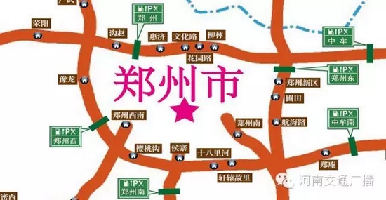⑥鄭州市火車站、各個長途汽車站、以及鄭州市周邊的京港澳、連霍、西南繞城、鄭少洛等高速公路。
