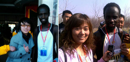 鄭開(kāi)馬拉松全程冠軍和半程冠軍分別接受本臺(tái)記者采訪(fǎng)
