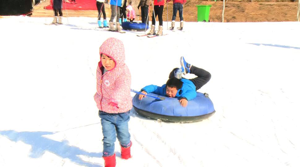 試了試,還是雪圈和小車來的實惠,好歹屁屁不疼: