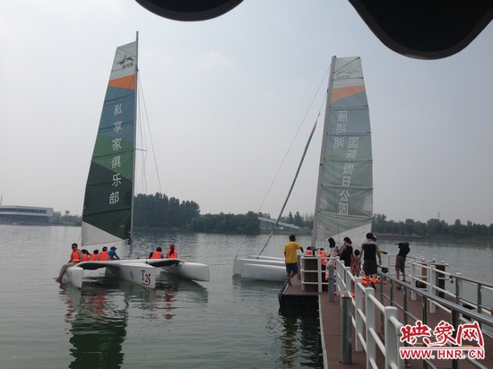 映象網(wǎng)訊 (記者 殷清卉)提起帆船,大家一般想起在大海里暢游的感覺,但是現(xiàn)在在我們鄭州也可以玩帆船了,7月27日,來自全省各地的300多名幸運(yùn)聽眾,便在河南電臺(tái)信息廣播《房產(chǎn)江湖》節(jié)目組的帶領(lǐng)下,在雁鳴湖國際假日公園過了一把帆船癮。