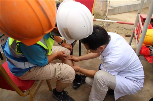醫(yī)生們一邊操作,一邊講解,工人們有不明白的,還可以現(xiàn)場提問。幾乎每一位認(rèn)真學(xué)習(xí)的建筑工人都想一試身手,醫(yī)生則在一旁一對一指導(dǎo)。