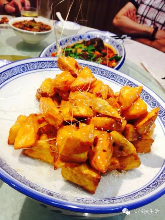 吃完了硬菜,總需要來(lái)道餐后甜品吧?拔絲類的菜品就算是咱們中式菜中的甜品了,看這拔絲的效果就知道廚師的手藝如何,長(zhǎng)長(zhǎng)的拔起,再往冷水里沾一沾,好吃好玩兒,吃出了童年的感覺(jué)?。?/p>