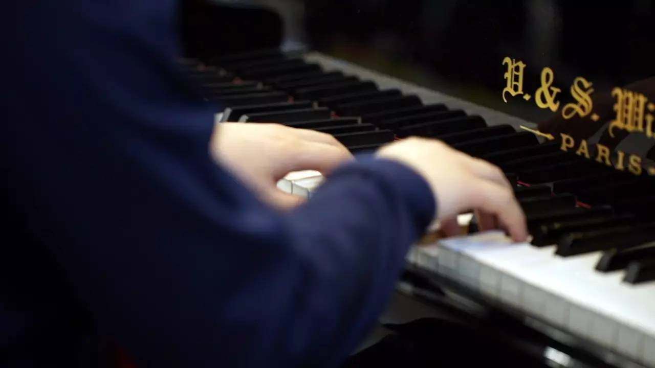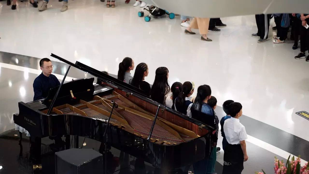 看著孩子還是不說話,旁邊的鋼琴師就在這時(shí),彈奏了起來……