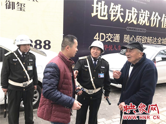 4月5日上午,在鄭州市工人路與汝河路交叉口附近,一手拄拐杖一手拎袋水果的八旬老漢向巡防隊員求助,說自己一大早到航海路帝湖廣場趕早市買水果,準(zhǔn)備到汝河路上的小外甥女家看看,結(jié)果一出早市就迷路了。不巧的是,老人所用的老年寶手機(jī)也出毛病聽不見聲音。他一直走了3個多小時也沒找到小外甥女家。