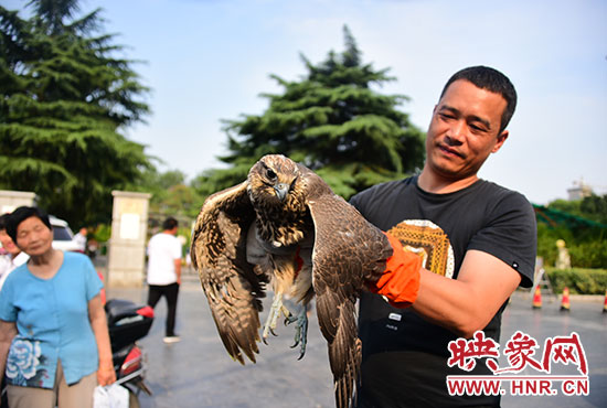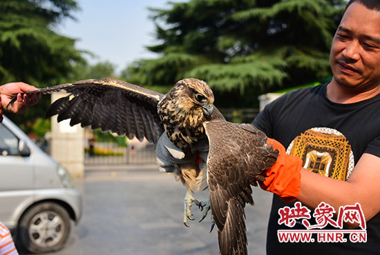 映象網(wǎng)快訊(記者 邱延波 文/圖)獵隼,大型猛禽,國家二級重點(diǎn)保護(hù)動物。6月15日,中牟一農(nóng)民竟然在蒜地里發(fā)現(xiàn)一只受傷的獵隼。