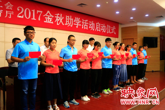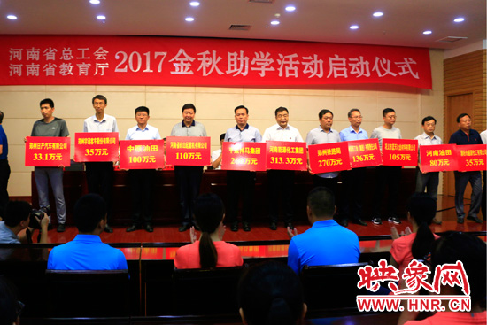 映象網(wǎng)快訊(記者 王寬 實習(xí)生 張璨榮 文/圖)又是一年金秋時,助學(xué)圓夢暖人心。8月16日,河南省總工會、河南省教育廳共同主辦的河南省2017“金秋助學(xué)”活動啟動儀式在鄭州舉行。省委副書記王炯,省人大常委會副主任、省總工會主席王保存,省政府副省長徐濟(jì)超,省政協(xié)副主席張廣智出席啟動儀式。