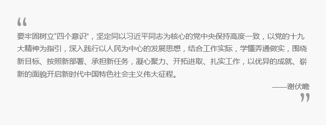 謝伏瞻說,黨的十九屆一中全會選舉習(xí)近平同志為黨的總書記,這是全黨全國各族人民的共同心愿,習(xí)近平總書記是全黨擁護(hù)、人民愛戴、當(dāng)之無愧的黨的領(lǐng)袖。大家要切實(shí)增強(qiáng)“四個意識”,同以習(xí)近平同志為核心的黨中央保持高度一致。中國特色社會主義進(jìn)入了新時代,這是一個重大的政治判斷,為我們國家發(fā)展標(biāo)明了準(zhǔn)確的歷史坐標(biāo)和發(fā)展方位。