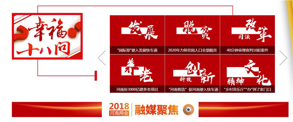 映象網(wǎng)訊(記者 秦雯)看兩會(huì)最熱最新鮮,看百姓關(guān)注,看代表委員風(fēng)采,看各界如何解讀報(bào)告。1月22日起,河南進(jìn)入2018兩會(huì)時(shí)間。大象融媒帶著問題聚焦兩會(huì),帶著答案回應(yīng)網(wǎng)民。其間,大象融媒旗下所屬各媒體大顯身手,貢獻(xiàn)出大量精彩的報(bào)道,直播、高清圖、系列策劃及H5產(chǎn)品等,這些內(nèi)容一經(jīng)推送,就吸引百姓高度關(guān)注,有些板塊更是形成“兩會(huì)熱門話題”和“網(wǎng)絡(luò)熱詞”,被網(wǎng)友分享,引代表委員熱議。