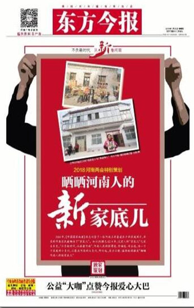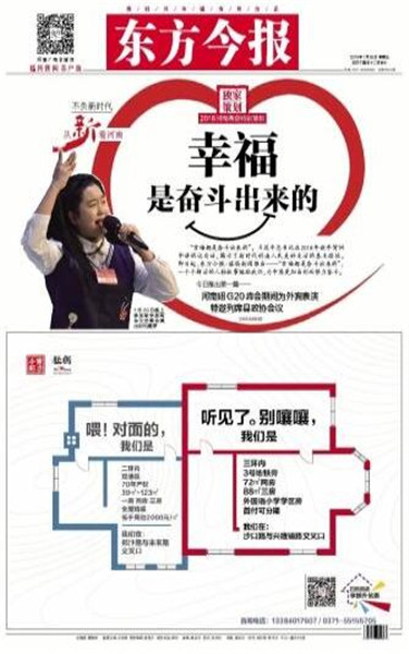 同時(shí),東方今報(bào)還推出2018河南兩會(huì)特別策劃——“幸福都是奮斗出來的”,側(cè)重報(bào)道正在奮斗且勵(lì)志的社會(huì)中堅(jiān)力量,一個(gè)個(gè)鮮活的人物故事勉勵(lì)我們,為中原更加出彩而努力奮斗。截至目前已刊登四篇報(bào)道,分別是《幸福是奮斗出來的系列報(bào)道之(1) 河南妞兩次為“彭媽媽”表演 特邀列席縣政協(xié)會(huì)議》《幸福是奮斗出來的系列報(bào)道之(2) 90后辭年薪二十萬工作創(chuàng)業(yè):我的心愿是“藝術(shù)+”》《幸福是奮斗出來的系列報(bào)道之(3) “海歸農(nóng)夫”師鵬飛:現(xiàn)代農(nóng)場放飛創(chuàng)業(yè)夢》。