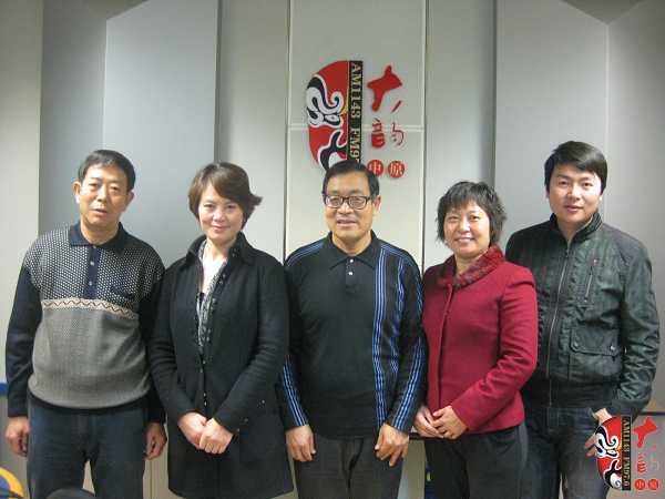 ?。ㄗ笃穑鸿鬈幩囆g團主任聶衛(wèi)國、副團長兼主要演員李風莉、團長李春友、主任魏桂愛和著名戲曲節(jié)目主持人戲曲廣播“當家小生”月陽在直播間
