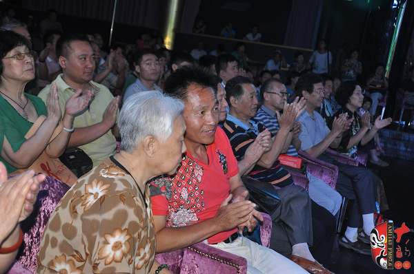 在當(dāng)天的演出中,除了關(guān)小鳳的精彩演唱之外,中國戲劇梅花獎(jiǎng)得主、豫劇名丑金不換,陳門再傳弟子、中國戲劇梅花獎(jiǎng)得主徐俊霞,關(guān)靈鳳親傳弟子霍梅英,戲曲名票龐笑天、吳素芹等也表演了各自的拿手好戲,為關(guān)小鳳助興演出。原西安獅吼劇團(tuán)的高材生、陳素真大師的學(xué)生陳素英今年78歲,在豫劇《三上轎》中她扮演婆婆,為關(guān)小鳳甘當(dāng)綠葉,其老到的表演也獲得了戲迷的熱情掌聲。鶴壁市豫劇團(tuán)團(tuán)長、豫劇名丑金不換剛剛擔(dān)任完河南省第七屆青年演員大賽的評委,就不辭勞苦地趕到演出現(xiàn)場。他介紹說,自己和關(guān)小鳳是封丘于店戲校的同學(xué),當(dāng)年他們那一屆學(xué)生當(dāng)中關(guān)小鳳是表現(xiàn)最優(yōu)秀的。關(guān)小鳳經(jīng)歷坎坷,但對藝術(shù)卻非常執(zhí)著,看到老同學(xué)的精彩表現(xiàn)他非常高興,希望關(guān)小鳳能把祥符調(diào)陳派藝術(shù)發(fā)揚(yáng)下去,祝福她在藝術(shù)道路上越走越好!