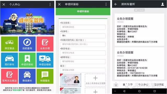 不出家門(mén),也可以領(lǐng)到綠標(biāo)自2015年7月27日起,鄭州車(chē)管所聯(lián)合鄭州環(huán)保局在微信公眾平臺(tái)推出了“微信申領(lǐng)環(huán)保標(biāo)”的服務(wù),如果您是“6年免檢”車(chē)輛的車(chē)主,即可通過(guò)微信平臺(tái)在線申領(lǐng)綠色環(huán)保標(biāo),申領(lǐng)成功后,會(huì)有專(zhuān)門(mén)的快遞人員送標(biāo)到家。