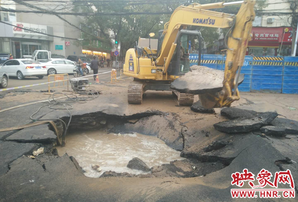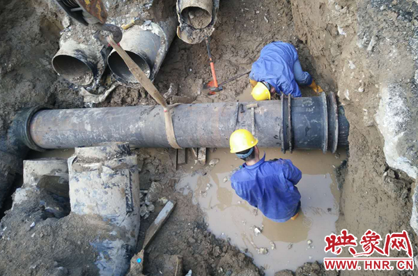 鄭州自來水公司迅速組織維修人員到場搶修。負責該區(qū)域維修任務的三強公司政七街維修隊維修一班第一時間趕赴現場止水、搶修。維修人員分班作業(yè),一組擺放警示標志,協調交警封閉道路,一組緊急關閉相關閥門實施止水,調運搶修機械、安排送水車趕往現場。