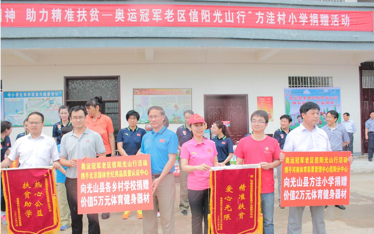 6月20日上午,由國家體育總局人力資源開發(fā)中心、河南省體育局和信陽市人民政府主辦,信陽市體育局、信陽市文明辦、信陽市扶貧辦和光山縣人民政府承辦的“弘揚(yáng)奧運(yùn)精神,助力精準(zhǔn)扶貧——奧運(yùn)冠軍老區(qū)信陽光山行”活動啟動儀式在光山文殊一中隆重舉行。