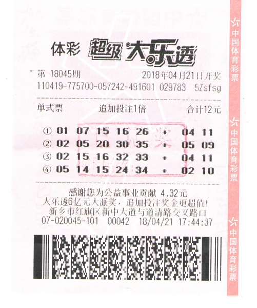 張先生這張中獎的彩票上,共有四注,屬單式追加投注,票面金額12元。據(jù)張先生介紹,前兩注是他從體彩銷售網(wǎng)點推薦的號碼中選出的,后兩注是他長期守號的號碼,這次是第二注讓他幸運的斬獲大獎!