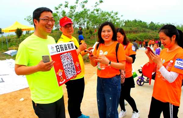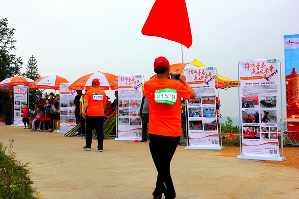 河南體彩管理中心信陽(yáng)分中心在賽道的4公里處設(shè)置了“河南體彩黨支部第十四小組黨員服務(wù)站”,布置了休息區(qū)域,免費(fèi)提供溫開(kāi)水為大家取用。還以概率游戲的大樂(lè)透玩法為主要宣傳內(nèi)容,張貼了宣傳品,現(xiàn)場(chǎng)為大家介紹大樂(lè)透的玩法知識(shí)。崎嶇的山路上,沿路擺放了體彩頂呱刮的銷(xiāo)售區(qū),由網(wǎng)點(diǎn)業(yè)主自發(fā)開(kāi)展“掃碼加好友”送即開(kāi)彩票的線上拉新活動(dòng),另外,信陽(yáng)分中心還為群眾登山愛(ài)好者免費(fèi)提供了簡(jiǎn)易的登山杖,確保大家的登山安全。