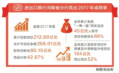 1月29日,進(jìn)出口銀行河南省分行行長(zhǎng)吳啟金表示,過(guò)去一年,分行努力貫徹習(xí)近平新時(shí)代中國(guó)特色社會(huì)主義思想,助力河南打造內(nèi)陸開放新高地。截至2017年底,進(jìn)出口銀行河南省分行累計(jì)投放貸款212.69億元,本外幣貸款余額268.01億元,有力助推我省企業(yè)“走出去”。