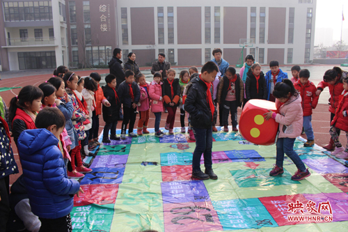 映象網(wǎng)教育頻道訊(記者 劉俊 通訊員 何利敏)“紅燈停,綠燈行,向前2步……”“阻止家人酒后駕車向前3步……”在鄭州市高新區(qū)五龍口小學(xué)的操場上,一場別開生面的“下棋”比賽正在進(jìn)行。在一張巨無霸“交通安全飛行棋”棋盤上,同學(xué)們扮作“棋子”,在棋盤上的小方格之間“穿梭”。一道道交通安全知識題目“攔”在“棋子”面前,答對問題方可繼續(xù)“前行”。