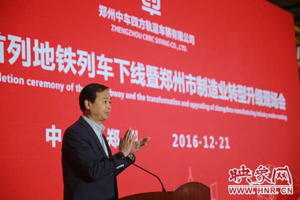 期間,河南省政府副秘書(shū)長(zhǎng)王夢(mèng)飛宣讀省委省政府賀信,中車青島四方機(jī)車車輛股份有限公司總經(jīng)理馬云雙代表投資方介紹企業(yè)產(chǎn)品產(chǎn)業(yè)情況,“鄭州造”首列地鐵列車用戶方鄭州市軌道交通有限公司黨委書(shū)記、董事長(zhǎng)、總經(jīng)理張洲致辭;鄭州市政府市長(zhǎng)程志明分別做重要講話。