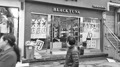 很多商鋪打出了房租到期、商品甩賣的標語