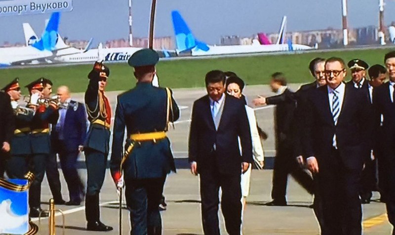 2015年5月8日,習(xí)近平乘專機抵達(dá)俄羅斯首都莫斯科。應(yīng)俄羅斯總統(tǒng)普京邀請,習(xí)近平將于8日至10日出席在莫斯科舉行的紀(jì)念衛(wèi)國戰(zhàn)爭勝利70周年慶典并訪問俄羅斯。圖為習(xí)近平抵達(dá)莫斯科。