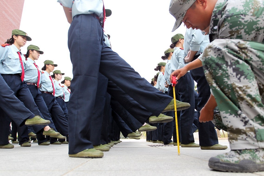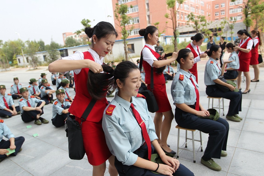 在大家普遍的印象里,學(xué)生軍訓(xùn)主要就是練隊(duì)列、踢正步等,最多還有軍體拳、步槍射擊。昨天上午,記者在鄭州航空工業(yè)管理學(xué)院軍訓(xùn)現(xiàn)場(chǎng)發(fā)現(xiàn),該院在站軍姿、踢正步等軍訓(xùn)項(xiàng)目上,引入卷尺、純凈水瓶等“裝備”,而且為“準(zhǔn)空姐”訓(xùn)練的課目中,還增加了如何盤發(fā)等項(xiàng)目。