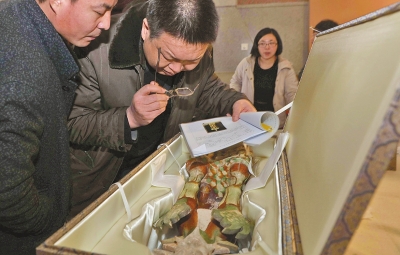 據(jù)了解,臺北·歷史博物館與河南省素有淵源,十幾年前,河南博物院就與歷史博物館建立了姐妹關(guān)系,開創(chuàng)了兩岸博物館締結(jié)姐妹關(guān)系的先河??谷諔?zhàn)爭爆發(fā) 后,民國河南省政府為保存文物,輾轉(zhuǎn)將當時河南博物館的精品由河南運至漢口、重慶,其中38箱、共5000余件組文物最終運到中國臺灣。這批文物后被撥交 臺北·歷史博物館,成為該館館藏重要基礎(chǔ)。昨日展覽現(xiàn)場記者注意到,4只飽經(jīng)滄桑的木箱也被擺在展廳入口處的展臺上,外表還留有編號和封條,頗為引人注 意,它們正是那批河南文物1937年南遷時所用的包裝箱。