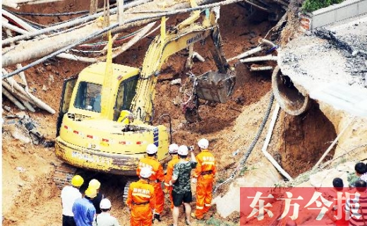 塌方發(fā)生時,一男一女被民警和熱心市民救出。目擊者稱,坑中仍有一名女士和小孩,但警方經(jīng)過排查,除了名叫張帆的女士,尚未發(fā)現(xiàn)有人員失蹤。今報三批記者輪班蹲守現(xiàn)場,截至3日2時,救援在經(jīng)歷了近30個小時后,尚未找到張帆?!鯑|方今報記者 夏萍 見習記者 靳亞東 宋迎迎 攝影 首席記者 袁曉強 張曉冬 沈翔 邱琦