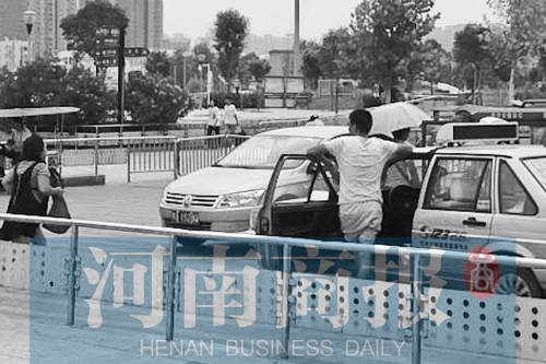 對(duì)于這些本不應(yīng)該在此出現(xiàn)的拉客車輛,河南商報(bào)記者暗中拍照時(shí),一名司機(jī)走上前來(lái)。