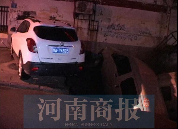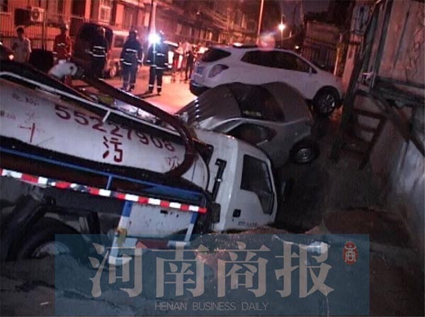 鄭州新鄭路凌晨現(xiàn)一深坑 停在路邊的兩車(chē)掉入坑中