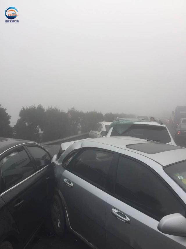 據(jù)現(xiàn)場郭先生描述:大概有4輛貨車,1輛中巴車,4輛私家車連環(huán)追尾,他就在這幾輛事故車后方,當時受大霧影響,能見度50米左右,前方堵車,結果這幾輛車都沒剎住,直接相繼撞上了,郭先生說“幸虧當時我車速不算快,及時把車剎住,不然前方就是一輛貨車,撞上去的話后果不堪設想,現(xiàn)在我的手都是抖的,太恐怖了”