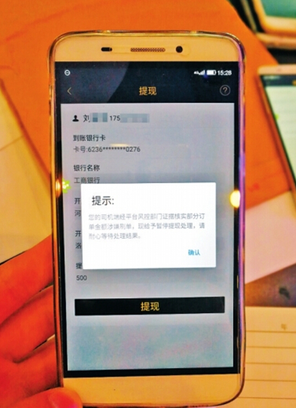 司機(jī)提現(xiàn)時(shí),賬戶被禁止提現(xiàn)。