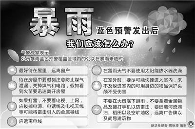 對(duì)于雨天不得不出行的市民,市防汛辦工作人員也提醒,一些安全常識(shí)要牢記,如雷雨天氣中不要在涵洞、立交橋下、低洼地、較高的墻體、樹(shù)木下避雨,有警示標(biāo)志的地段切勿進(jìn)入。遇到打雷,行人應(yīng)停止行走,兩腳并攏中蹲下。汛期當(dāng)橋涵、隧道積水超過(guò)30厘米,普通道路積水超過(guò)40厘米時(shí),交警部門(mén)將封閉相關(guān)路段交通,設(shè)置禁止通行標(biāo)示牌。市民如遇鐵路立交橋下積水,應(yīng)留意水位標(biāo)識(shí)和相關(guān)警示,在水深未知的情況下勿冒險(xiǎn)涉水。在強(qiáng)降雨過(guò)程中,為加快退水,市政人員會(huì)掀開(kāi)井蓋,市民要留意警示標(biāo)志,繞開(kāi)窨井,確保安全。若車(chē)輛不慎掉入深水區(qū),切勿打開(kāi)車(chē)窗或試圖打開(kāi)車(chē)門(mén),應(yīng)努力呼吸,找好準(zhǔn)備逃生的門(mén)把手,等水慢慢涌入車(chē)內(nèi),即將漫到車(chē)頂時(shí),深吸一口氣,然后屏氣打開(kāi)車(chē)門(mén)迅速游出。