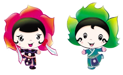 造型以綠色為主色調(diào),園藝氣息濃厚,頭頂不同的花草造型,體現(xiàn)園藝豐富的藝術(shù)形態(tài),手拉手相伴而走,體現(xiàn)自然與人類(lèi)和諧共生的發(fā)展理念。身體的圖案是中國(guó)青銅器花紋,凸現(xiàn)與中華文明的淵源。