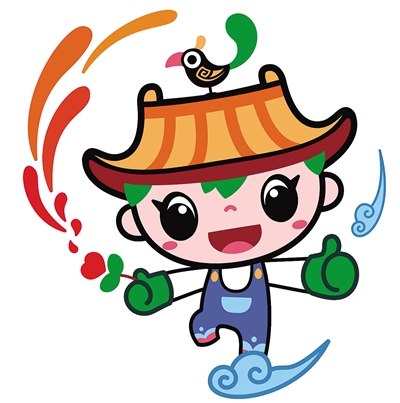 吉祥物“園寶”整體形象是一位朝氣蓬勃的小園丁,造型以傳統(tǒng)元素融匯時(shí)尚風(fēng)格,集建筑、山水、植物、動(dòng)物、文化藝術(shù)等園林要素于一身;頭頂?shù)拿弊有嗡浦惺絺鹘y(tǒng)建筑屋頂,象征中國古典園林建筑,代表“園”;蔥郁的頭發(fā)和雙手,胸部、腿部圖案、色彩等,象征山水花木,代表“林”;身體五彩繽紛,臉部笑容明媚親和,右手豎起點(diǎn)贊的大拇指;左手執(zhí)新綠萌發(fā)的葉芽,象征園林工作者辛勤耕耘,讓華夏大地永葆綠水青山。