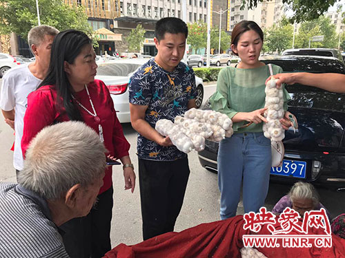 8月23日中午,在鄭州市福元路英協(xié)路路口,愛心市民注意到了正在賣大蒜的兩位老人,紛紛上前搶購。