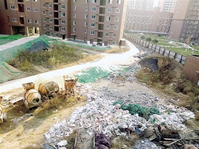 王女士介紹他們小區(qū)是清華·紫光園一期,與二期工地僅一墻之隔。8號(hào)樓從二樓起就能看到下面的工地,窗戶朝南原本是個(gè)好方向,冬天太陽可以曬到屋里來,還可以經(jīng)常開窗通風(fēng)。但因樓下工地垃圾成堆,樓上的住戶都不敢輕易開窗,經(jīng)常有各種惡臭飄進(jìn)房間。